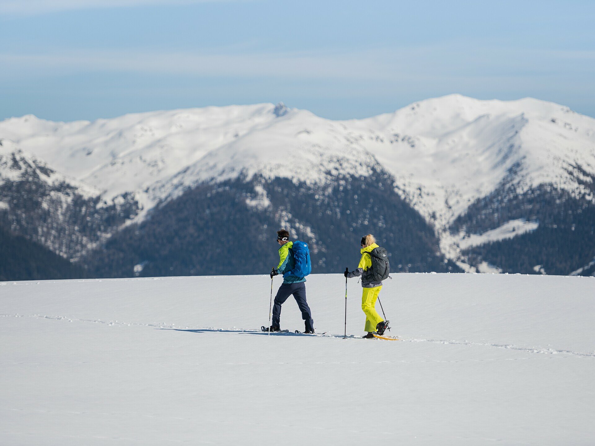 A beautiful snowshoe hike with moderate difficulty and beautiful view on the Dolomites, as well as on the main Alpine ridge and the Rieserferner peaks.