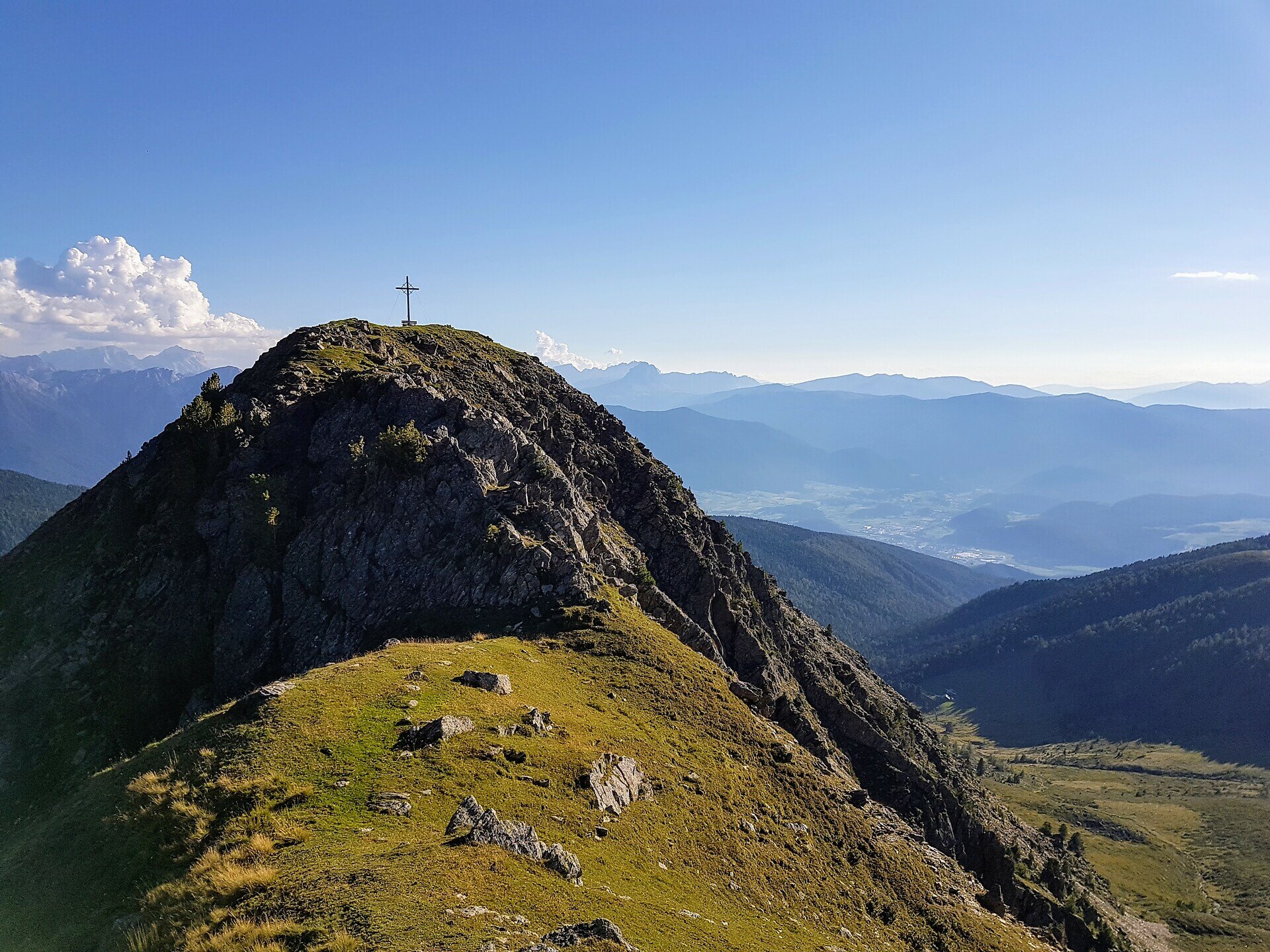 Il sentiero (n. 8) segue ora l'ampia e pianeggiante cresta, ben segnalata, fino alla croce di vetta del Kor, visibile da lontano; da qui si può già vedere la prossima meta del percorso.