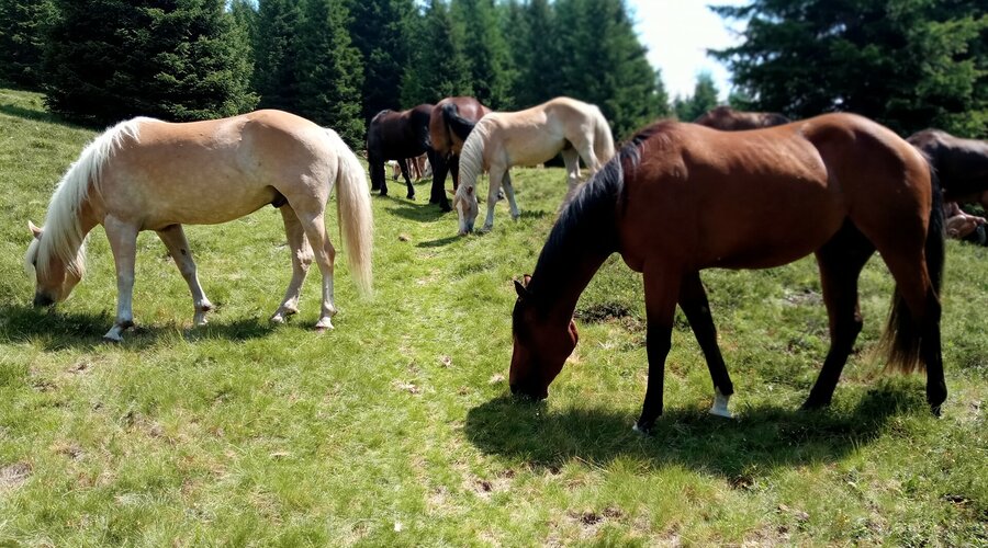 Discover the wildlife on our farm: horses and cuddly rabbits are happy to receive pets from young and old, content pigs wallow leisurely in the straw, chickens and quails provide fresh eggs, while our young cattle spend their summer on lush alpine meadows.